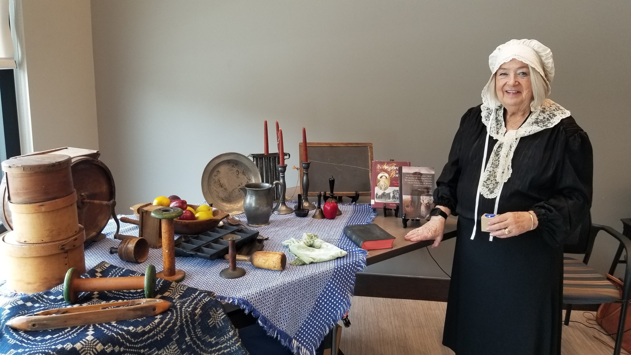 Ann Membel shared the story of her ancestor, Mary Lyon, pioneer in women’s education and founder of Mount Holyoke College at the September, 2025 meeting.